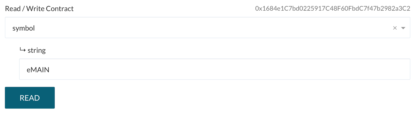 Similarly, verify the contract symbol. Notice that in this case the value is eMAIN where βeβ refers to a transfer to the Ethereum Sidechain.